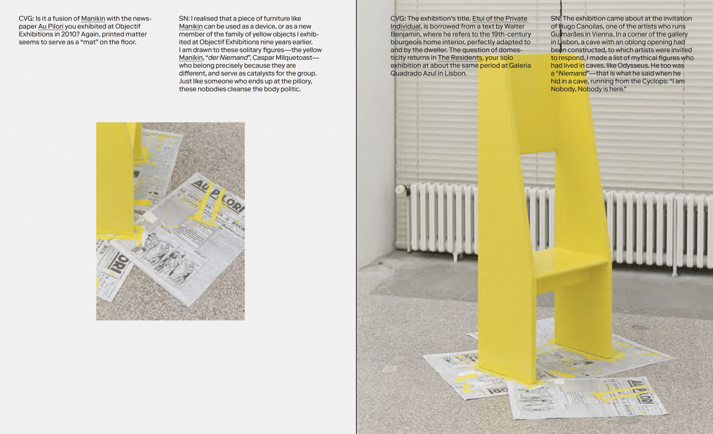 Throughout the book, Nys’s fascination with systems of power and authority intersects with a sensitivity to intimacy, subjectivity, and the everyday, engaging with feminist perspectives that examine the politics of representation. Historical figures, marginal anecdotes, and overlooked documents appear alongside reflections on resistance, collaboration, design, and the conditions under which artworks –and the social roles they inhabit – come into being. Language, in particular, emerges as both material and problem: a tool that promises clarity while constantly slipping, misfiring, or revealing its own limits.